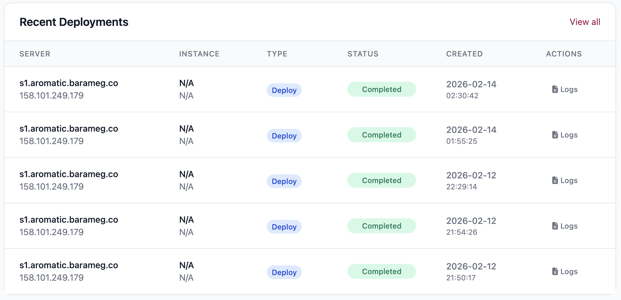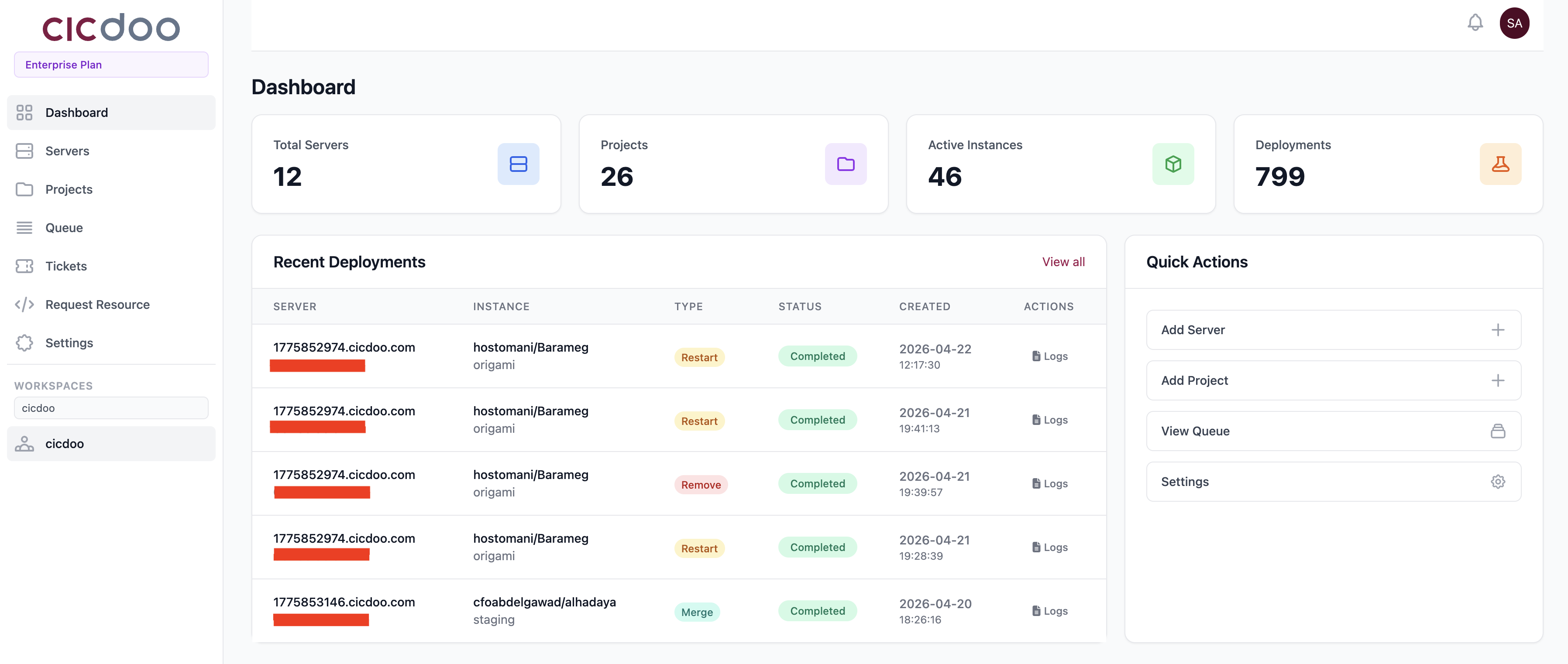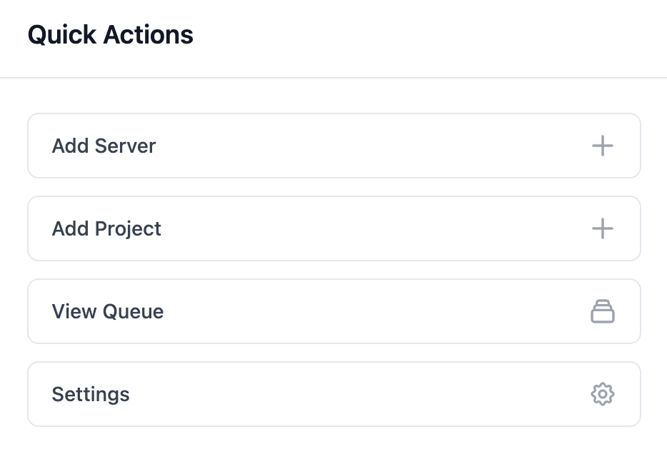 Shortcut buttons for the most common tasks, accessible directly from the dashboard without navigating to a specific resource.