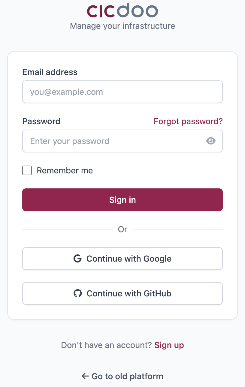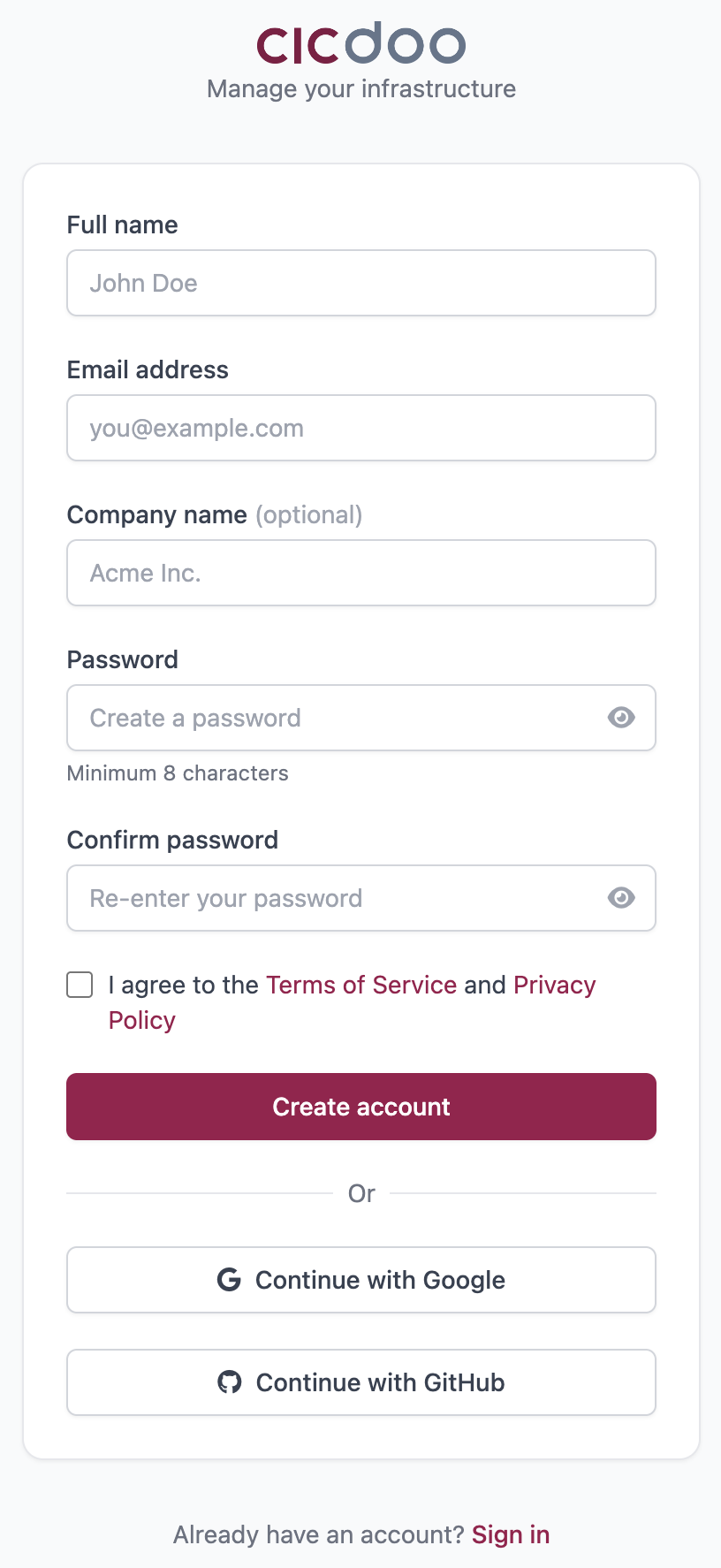 Navigate to the CICDoo sign-up page and complete the registration form: